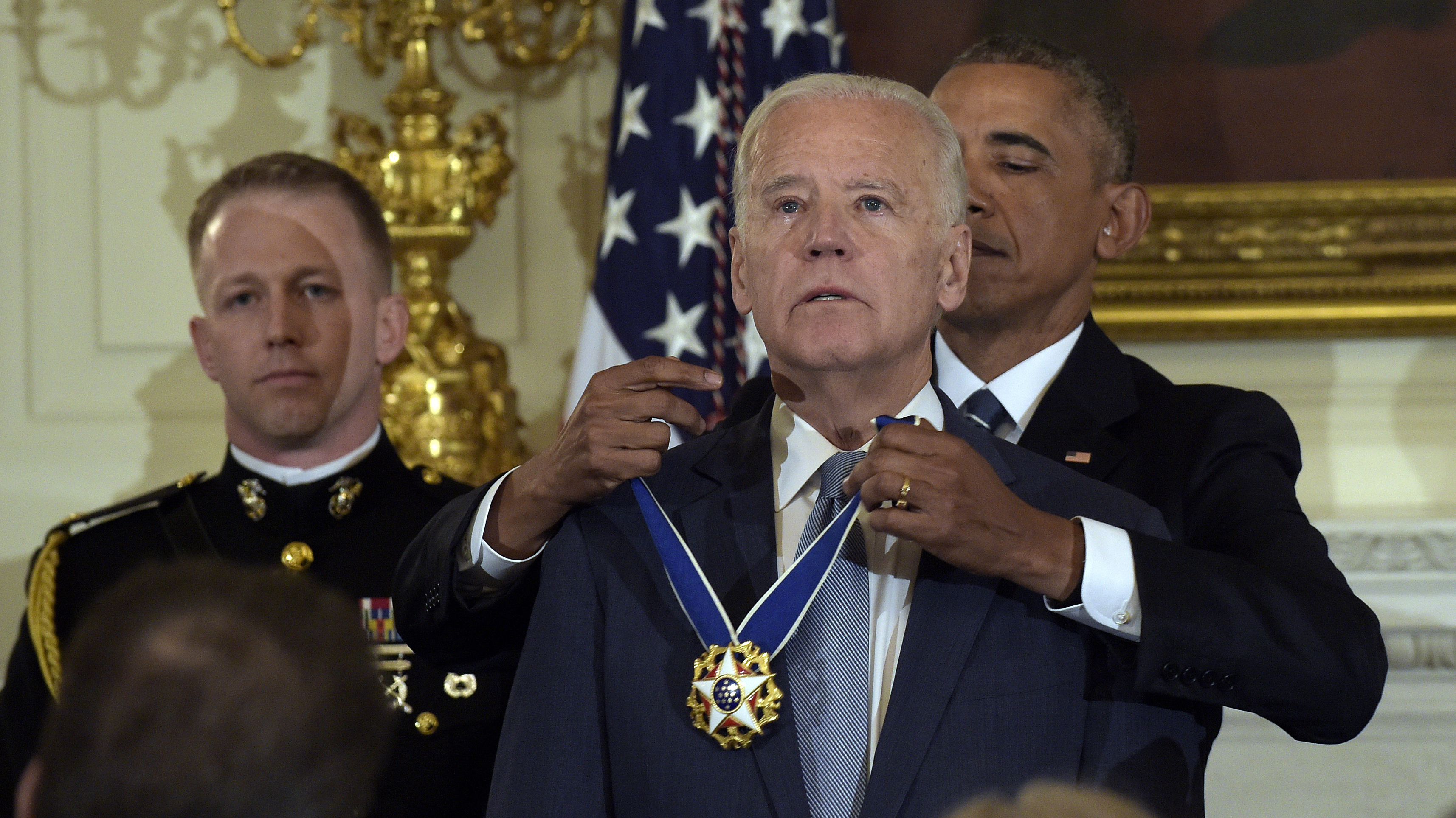 স্থানীয় সময় বৃহস্পতিবার অনেকটা অবাক করে দিয়ে নিজ প্রশাসনের ভাইস প্রেসিডেন্টকে ‘মেডেল অব ফ্রিডম’ পরিয়ে দেন প্রেসিডেন্ট বারাক ওবামা।