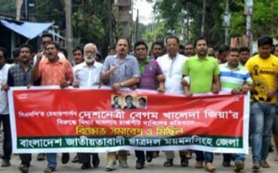 mymenবিএনপি চেয়ারপারসন বেগম খালেদা জিয়ার বিরুদ্ধে মিথ্যা মামলার চার্জশীট দাখিলের প্রতিবাদে বিক্ষোভ মিছিল করেছে  ময়মনসিংহ জেলা ছাত্রদল।