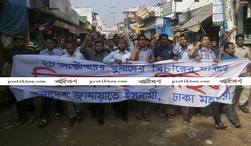 তিনি বলেন, জামায়াত-শিবির কর্মীরা যাত্রাবাড়ীর কোনাপাড়া মুরগির ফার্ম এলাকায় মিছিল বের করলে খবর পেয়ে পুলিশ সেখানে যায়। এ সময় মিছিল থেকে পুলিশের দিকে ঢিল ও ককটেল ছোড়া হলে পুলিশ গুলি ছুড়ে তাদের ছত্রভঙ্গ করে দেয়। এ সময় ব্যানারসহ দুইজনকে আটক করে পুলিশ।