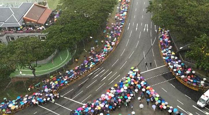 বৃষ্টি উপেক্ষা করে নেমেছে লাখো মানুষের ঢল নামে।  ছাতা ও রেইন কোট পরে জাতীয় পতাকা হাতে নিয়ে রাজধানীতে লাইনে দাঁড়িয়েছে দেশটির লাখ লাখ সাধারণ মানুষ।