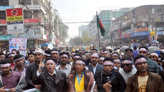 বাংলাদেশ সড়ক পরিবহন শ্রমিক লীগ, বাংলাদেশ মুক্তিযোদ্ধা প্রজন্ম লীগ, ঢাকা জেলা হিউম্যান হলার সড়ক পরিবহন শ্রমিক ইউনিয়ন, ঢাকা জেলা ট্রাক ও কভার্ডভ্যান শ্রমিক ইউনিয়ন, গামেন্টর্স শ্রমিক ইউনিয়ন ও বাংলাদেশ মুক্তিযোদ্ধা সংসদের কয়েকশ কর্মী বৃহস্পতিবার সকাল সাড়ে ১০টার দিকে গুলশানের ৮৬৫ নম্বর সড়কে বিএনপি চেয়ারপারসন খালেদা জিয়ার কার্যালয়ের উদ্দেশে রওয়ানা হলে পুলিশ নর্থ রোডের কাছে তাদের আটকে দেয়।