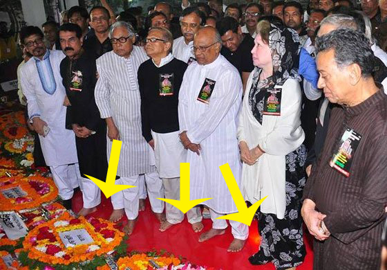 khaleda controversy 1একুশে ফেব্রুয়ারি ভাষা শহীদদের প্রতি শ্রদ্ধা জানাতে গিয়ে কেন্দ্রীয় শহীদ মিনারের মূল বেদিতে সর্বোচ্চ ধাপে উঠে বিতর্কের জন্ম দিয়েছেন বিএনপির চেয়ারপারসন খালেদা জিয়াসহ বিএনপি নেতারা। এর মধ্য দিয়ে শহীদ মিনারের ‘পবিত্রতা নষ্ট করা হয়েছে’ বলে ক্ষোভ প্রকাশ করেছে একুশে ফেব্রুয়ারি ও আন্তর্জাতিক মাতৃভাষা দিবস উদযাপন কমিটিসহ সচেতন মহল।