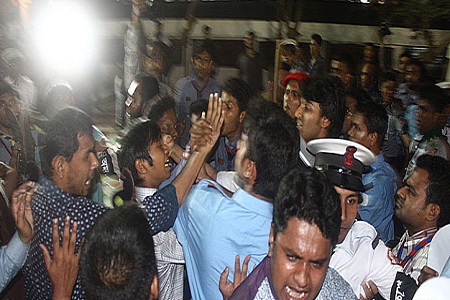 রবিবার রাত ১টার পর শহীদ মিনারে ফুল দিয়ে ভাষা শহীদদের শ্রদ্ধা জানানোর সময় এ ঘটনা ঘটে।