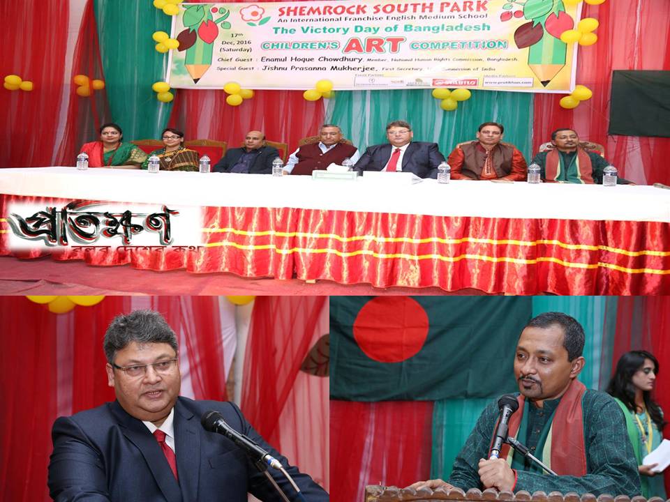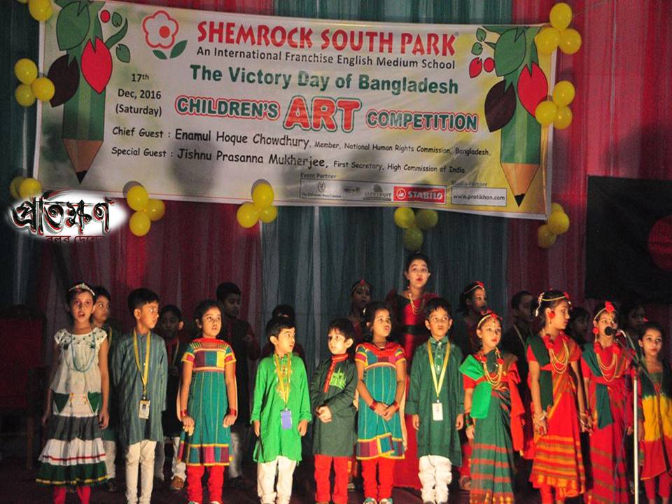 বিজয় দিবসের ৪৫ বছর পূর্তি উপলক্ষে প্রতি বছরের মতো এবারও ইংরেজি মাধ্যম স্কুল শেমরক সাউথ পার্ক আয়োজন করে শিশুকিশোরদের নিয়ে চিত্রাঙ্কন প্রতিযোগিতা ও সাংস্কৃতিক অনুষ্ঠানের। এতে মিডিয়া পার্টনার হিসেবে যুক্ত ছিল প্রতিক্ষণ ডট কম।