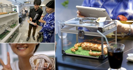 ধরুন ক্যাফের যে টেবিলে বসে আপনি কফি বা লাইট খাবার খাচ্ছেন সেই  টেবিলটির মাঝে একটি সাপ কুন্ডুলী পাকিয়ে বসে আছে। কী করবেন? কেমন লাগছে? দৌড় দেয়ার প্রয়োজন নেই, সাপটি কাচের বাক্সে বন্দি। তবে আপনি চাইলে সাপের সাথে সেলফি তুলতে পারবেন। সেজন্য সুব্যবস্থাও রয়েছে । সবচেয়ে  বড় বিষয় সাপগুলোর বিষ দাঁত ভেঙে দেওয়া হয়েছে।  কিন্তু আপনার জীবন যাপনের কোন এক বিশেষ মুহূর্ত আপনি সাপের সঙ্গে কফি খেয়ে কাটাতেই পারেন।