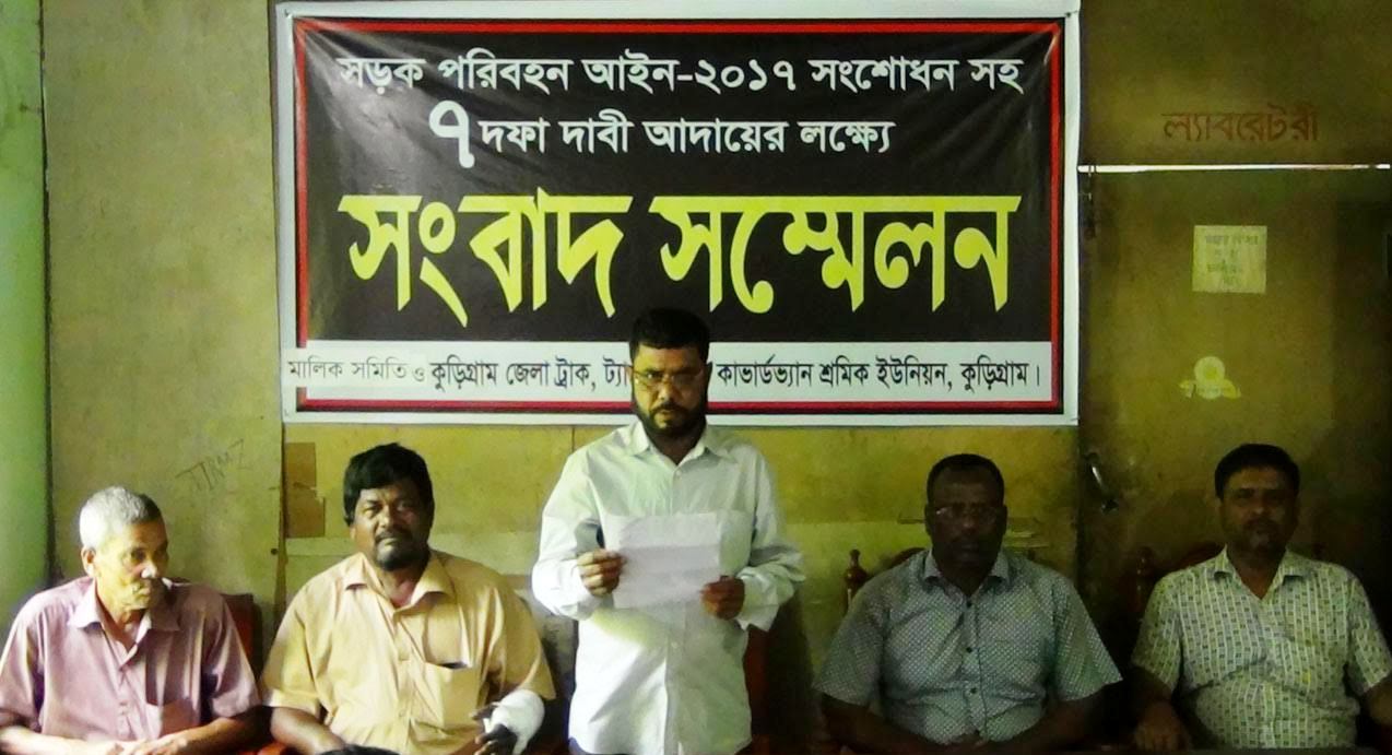 সড়ক পরিবহন আইন-২০১৭-এর পণ্যপরিবহন মালিক শ্রমিকের স্বার্থপরিপন্থী আইনের সংশোধনসহ ৭ দফা দাবিতে কুড়িগ্রামে সংবাদ সম্মেলন করেছে ট্রাক, ট্যাংকলরি, কার্ভাডভ্যান মালিক সমিতি ও শ্রমিক ইউনিয়ন।