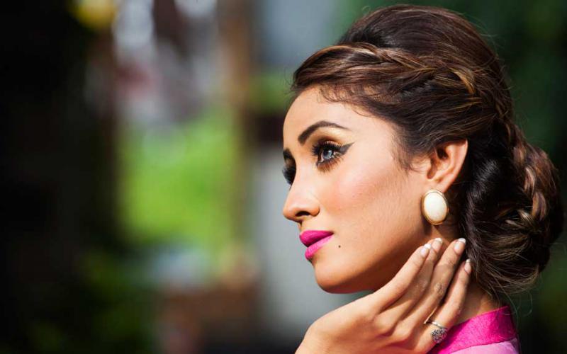 আবার এটির সাথে সামনের চুলগুলো কার্ল করে থাকেন। খোঁপার প্রতিটা অংশে স্টোন বা বিডস লাগাতে