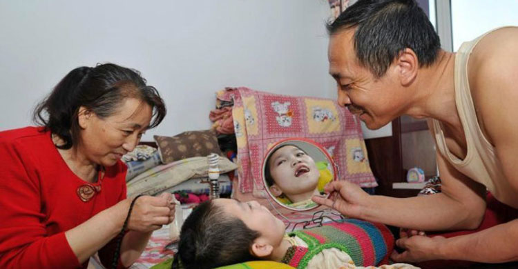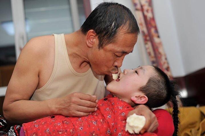 সন্তানের যে কোনো অসুখে মা-বাবার দুশ্চিন্তার কোনো শেষ নেই। সারা রাত নির্ঘুম কাটিয়ে দেয়া থেকে শুরু করে নিজের যেকোনো সুখকে বিসর্জন দিয়ে হলেও সন্তানের মুখে সুস্থতার হাসি দেখতে চান । সন্তানের প্রতি বাবা-মা’র ভালোবাসা অপরিমাযোগ্য। তাদের নিরলস পরিশ্রমের কাছে পৃথিবীর সবকিছু হার মানায়। চীনের সাংহাই প্রদেশের হৃদয় স্পর্শকারী তেমনই একটি গল্প। সাংহাইয়ের এক দম্পতি খাবার মুখে নিয়ে চিবিয়ে সেরিব্রাল পালসিতে (জন্মের আগে অথবা পরে মস্তিষ্কের ক্ষতির কারণে পক্ষাঘাতগ্রস্থ) আক্রান্ত পালিত কন্যাকে গত ১৫ বছর ধরে খাওয়াচ্ছেন।