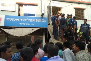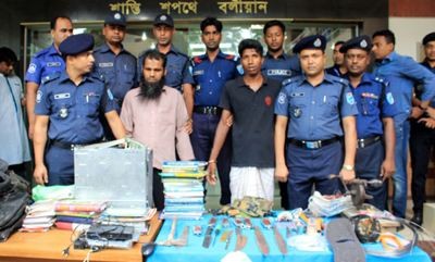 সাভারের আশুলিয়ায় বাংলাদেশ কমার্স ব্যাংকে ডাকাতির ঘটনায় ২ জনকে আটক করেছে পুলিশ। শুক্রবার ভোর রাতে টঙ্গির কোনাবাড়িতে অভিযান চালিয়ে বিপুল পরিমাণ বিস্ফোরক ও অস্ত্রসহ তাদের গ্রেফতার করা হয়। আটকেরা হলেন- বাবুল সরদার (৩২) ও মিন্টু প্রধান (২৮)। গ্রেফতার দুইজনের কাছ থেকে বোমা তৈরির কাজে ব্যবহূত আধুনিক মেশিন, গান পাউডার, ওমেগা ওয়েট মেশিন, স্পিন্টার, ৪টি চাপাতি,