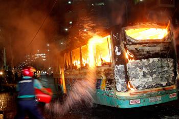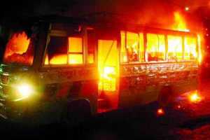 জগন্নাথ বিশ্ববিদ্যালয়ের সামনে তানজিল পরিবহনের একটি বাসে আগুন দিয়েছে দুর্বৃত্তরা। মঙ্গলবার সন্ধ্যা ৭ টার দিকে বিশ্ববিদ্যালয়ের সামনে বাহাদুরশাহ পার্ক সংলগ্ন রাস্তায় ওই বাসে আগুন দেয়া হয়। তবে এ ঘটনায় কেউ হতাহত হয়নি। ফায়ার সার্ভিসের সদরঘাট শাখার অপারেশন অফিসার শাকিল বাসে আগুন দেওয়ার বিষয়টি নিশ্চিত করেছেন। তিনি জানান, তাদের দুইটি ইউনিট ঘটনাস্থলে গিয়ে আগুন নিভিয়ে ফেলে।