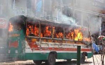 ঢাকার সাভারে যাত্রীবাহী বাসে দুর্বৃত্তদের ছোড়া পেট্রল বোমা হামলায় মো. সুজন খালাশি (২৮) নামে এক বাসযাত্রী দগ্ধ হয়েছেন। শনিবার রাত ৮টায় সাভারের গেন্ডা বাসস্ট্যান্ডের অদূরে সাভার ফায়ার স্টেশনের সামনে এ ঘটনা ঘটে। তিনি ফরিদপুর জেলার সালথা উপজেলার সিংহপ্রতাপ গ্রামের হিরু খালাশির ছেলে। প্রত্যক্ষদর্শী সূত্র জানায়, পাটুরিয়া থেকে এএনবি পরিবহনের একটি যাত্রীবাহী বাস (নং ১০১) গাবতলী