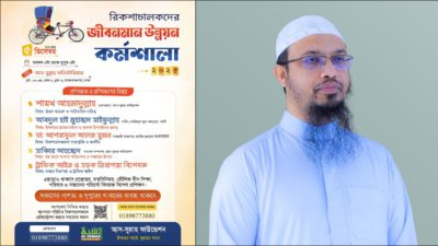 জনপ্রিয় ইসলামি বক্তা ও আস-সুন্নাহ ফাউন্ডেশনের চেয়ারম্যান শায়খ আহমাদুল্লাহ রিকশাচালকদের জন্য “জীবনমান উন্নয়ন কর্মশালা” নামে নতুন একটি উদ্যোগ ঘোষণা করেছেন। ..বিস্তারিত