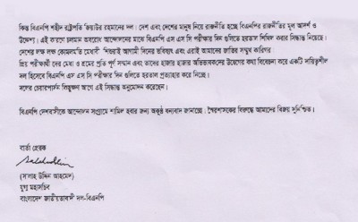সড়ক পরিবহন ও সেতুমন্ত্রী ওবায়দুল কাদের বলেছেন,এই মুহূর্তে সরকার ও দলে সংলাপের কোনো সিদ্ধান্ত নেই।তবে দেশে চলমান অবস্থায় আলোর ঝলকানি যে কোনো সময় দেখা যাবে বলেও মন্তব্য করেছেন তিনি। বৃহস্পতিবার (১২ ফেব্রুয়ারি) সচিবালয়ে নিজ দপ্তরে সাংবাদিকদের প্রশ্নের জবাবে এসব কথা বলেন মন্ত্রী। ইউরোপীয় ইউনিয়নের একটি প্রতিনিধি দল বুধবার (১১ ফেব্রুয়ারি) প্রধানমন্ত্রী শেখ হাসিনার সঙ্গে দেখা