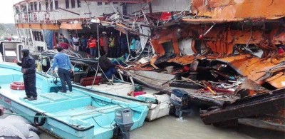 বরিশালের কীর্তনখোলা নদীতে বিআইডব্লিউটিসির স্টিমার পিএস মাহসুদ ও ঢাকাগামী সুরভী-৭ লঞ্চের মধ্যে ভয়াবহ সংঘর্ষ হয়েছে। এ দূর্ঘটনায় এখন পর্যন্ত ৫ যাত্রীর লাশ উদ্ধার হয়েছে। এছাড়া গুরুতর আহত আরো ৮ যাত্রীকে উদ্ধার করে হাসপাতালে পাঠানো হয়েছে। সোমবার ভোরে এই দুর্ঘটনা ঘটে বলে বিআইডব্লিউটিএর নৌনিরাপত্তা ও ট্রাফিক বিভাগের উপপরিচালক মো. মোস্তাফিজুর রহমান জানিয়েছেন। মো. মোস্তাফিজুর রহমান জানান,