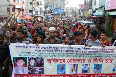 ব্রাহ্মণবাড়িয়ায় প্রতিপক্ষের হাতে আওয়ামীলীগ কর্মী সালাল মিয়া হত্যার প্রতিবাদ ও প্রধান আসামী আওয়ামীলীগ নেতা কাঞ্চন মিয়াসহ অন্য আসামীদের গ্রেফতার দাবীতে ঝাড়ু-জুতা মিছিল ও সমাবেশ করেছে এলাকাবাসী। শুক্রবার বাদ জুমা শহরের কান্দিপাড়া এলাকা থেকে নারী-পুরুষ ঝাড়ু ও জুতা নিয়ে বিক্ষোভ মিছিল বের করে। বক্তারা সালাল হত্যার প্রধান আসামী আওয়ামীলীগ নেতা কাঞ্চন মিয়াসহ অন্য আসামীদের গ্রেফতারের দাবি ..বিস্তারিত