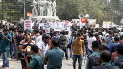 লেখক ও ব্লগার অভিজিৎ রায় হত্যাকাণ্ডের প্রতিবাদে ঢাকা বিশ্ববিদ্যালয়ের (ঢাবি) রাজু ভাস্কর্যের সামনে মিলিত হয়েছেন ছাত্র-শিক্ষক, সাংস্কৃতিক-মানবধিকার কর্মী ও রাজনৈতিক নেতারা। তারা এ হত্যাকাণ্ডের দায় সরকারকে নিতে হবে বলে মন্তব্য করেছেন। শুক্রবার বেলা ১১টায় রাজু ভাস্কর্যের সামনে প্রতিবাদ সমাবেশ থেকে তারা এ কথা বলেন। বক্তারা বলেন, ভাইভার, মোবাইল ফোনে কথা বললে সরকার জানতে পারে। কিন্তু