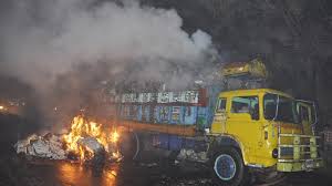 রাজশাহীতে পণ্যবাহী ট্রাকে আগুন