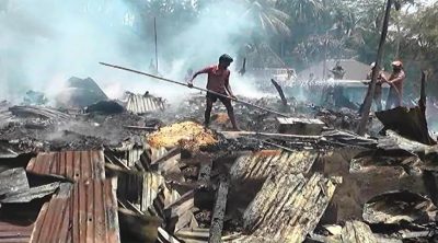 ঝালকাঠির রাজাপুর উপজেলায় আগুন লেগে ৫টি ঘর সম্পূর্ণ পুড়ে ছাই হয়ে গেছে। এসময় আগুনে পুড়ে ঘরে থাকা চাল-ডাল ও নগদ টাকাসহ অর্ধ কোটি টাকার ক্ষতি হয়েছে বলে প্রাথমিকভাবে ধারণা করা হচ্ছে। গতকাল শনিবার উপজেলার গালুয়া ইউনিয়নের গাজি বাড়ির ফারুক গাজির ঘরে প্রথমে আগুন লাগে এবং মুহূর্তের মধ্যে তা পাশের চারটি ঘরে ছড়িয়ে পড়ে। স্থানীয়রা জানান, ..বিস্তারিত