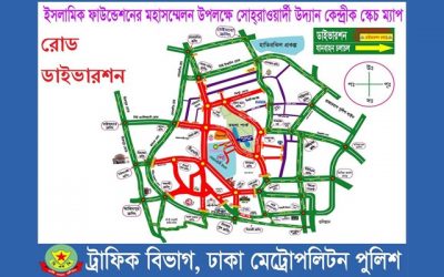 বাংলাদেশ ইসলামিক ফাউন্ডেশনের প্রতিষ্ঠাবার্ষিকীতে সোহরাওয়ার্দী উদ্যানে ওলামাদের মহাসমাবেশ উপলক্ষে রাজধানীর ২৫টি পয়েন্টে যান চলাচল বন্ধ থাকবে। আজ বুধবার সকালে ঢাকা মেট্রোপলিটন পুলিশের (ডিএমপি) সদর দপ্তরে আয়োজিত এক সংবাদ সম্মেলনে মহাসমাবেশ উপলক্ষে রাজধানীর যান ব্যবস্থাপনা তুলে ধরা হয়। সংবাদ সম্মেলনে জানানো হয়, রাজধানীর বিজয় সরণি, খামারবাড়ি, বাংলামোটর, মগবাজার, পরীবাগ, সাকুরাগলি, পুলিশ ভবন, সবজিবাগান, মিন্টো রোড পূর্ব