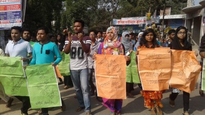 রামপাল বিদ্যুৎকেন্দ্র নির্মাণ বন্ধের দাবিতে তেল-গ্যাস-খনিজ সম্পদ ও বিদ্যুৎ-বন্দর রক্ষা জাতীয় কমিটির ডাকা আধাবেলা হরতালের শুরুতে ঢাকা বিশ্ববিদ্যালয় ক্যাম্পাসে বিক্ষোভ মিছিলে পুলিশের সঙ্গে হরতালকারীদের ব্যাপক ধাওয়া-পাল্টাধাওয়া হয়েছে। বিক্ষোভকারীরা পুলিশের একটি পিকআপ ভ্যানের কাচ ভাংচুর করে। এ সময় পুলিশ হরতালকারীদের লক্ষ্য করে টিয়ার গ্যাসের শেল নিক্ষেপ করেছে। সুন্দরবন রক্ষার দাবিতে আজ বৃহস্পতিবার ভোর ৬টা থেকে এই